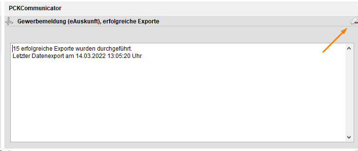 Auf dem PC-KLAUS Desktop werden Ihnen Statusinformationen zum Export der Daten angezeigt. Klicken Sie auf das markierte Symbol um das Textfeld zu erweitern.