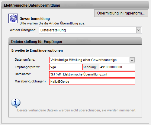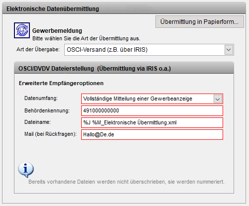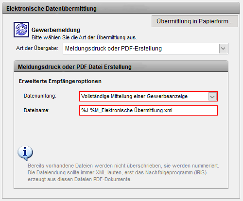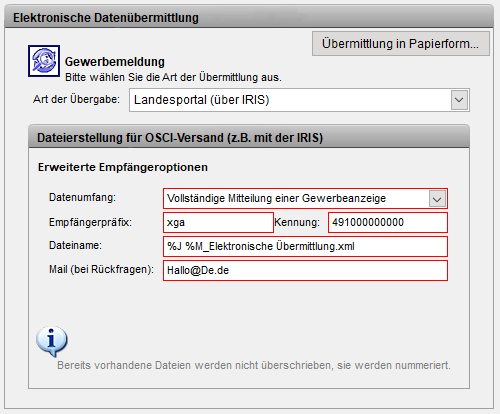Ausgabe xGewerbeordnungsdateien in empfängerbezogene Ordner. Aufgaben der Iris werden dann verwendet, um z.B.: