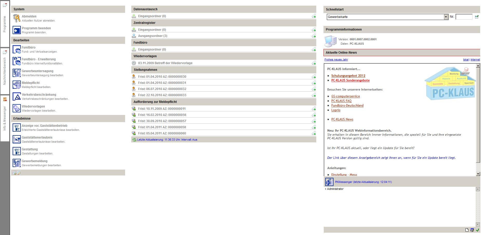 Schnellstart, Internetbereich und PC-KLAUS Messenger