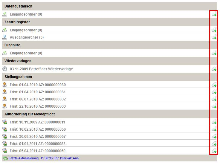 Im Mittlerem Überwachungsbereich werden die für Sie vorliegenden Wiedervorlagen, Stellungnahmen, Aufforderung zur Meldepflicht als auch der Datenaustausch angezeigt.