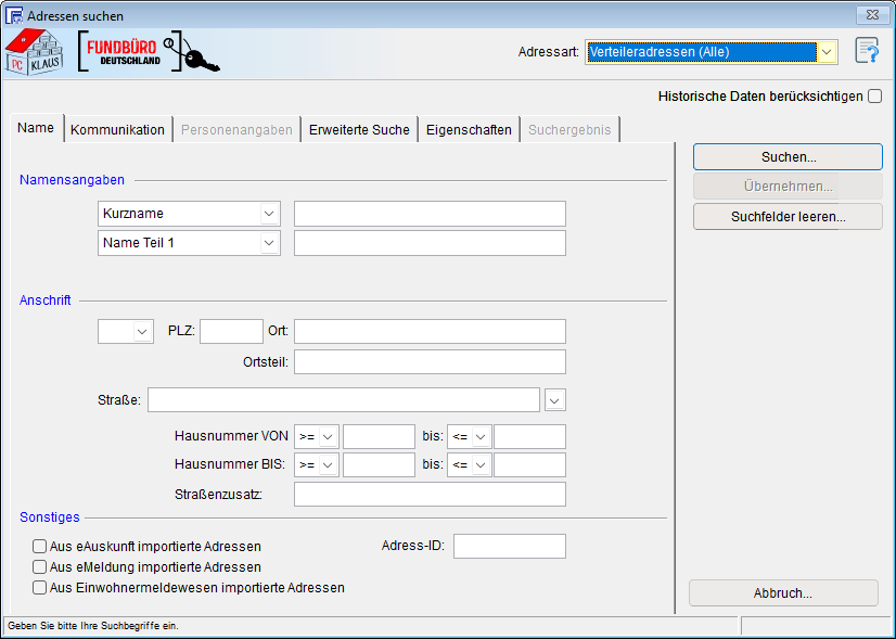 Ausgabe zusätzlicher Adressmerkmale