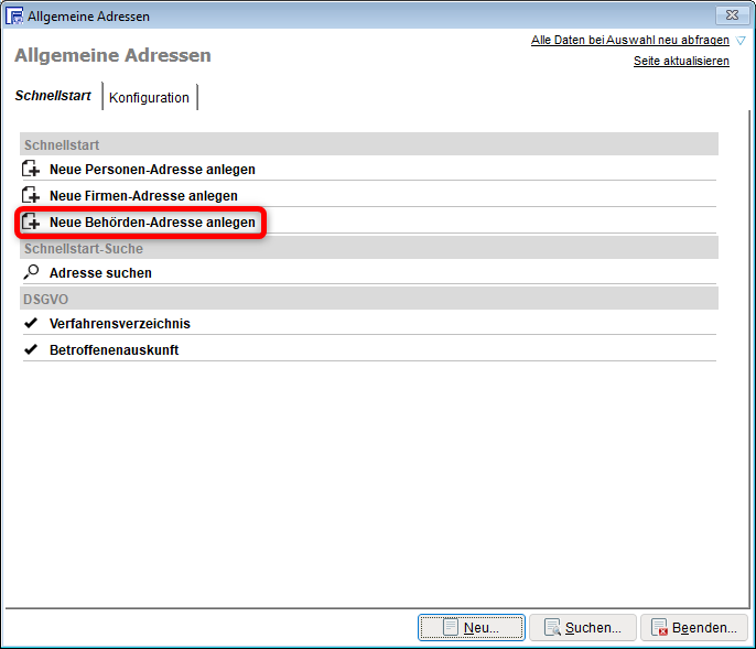 Adresserfassung