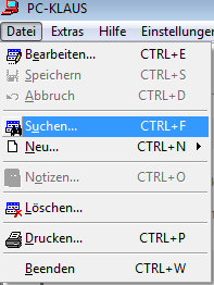 Sie können die Suche über den [Suchen]-Schalter von dem beim Modulstart angezeigten Formular oder über den Menüpunkt [Datei] [Suchen] während das Erfassungsformular angezeigt wird starten.