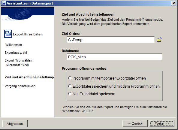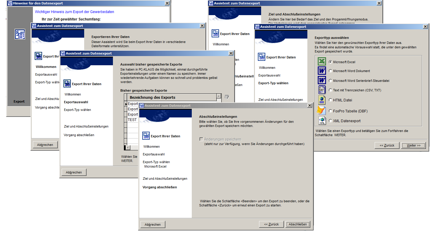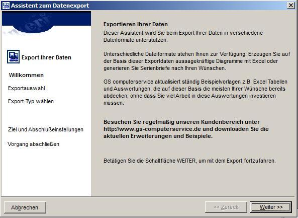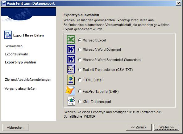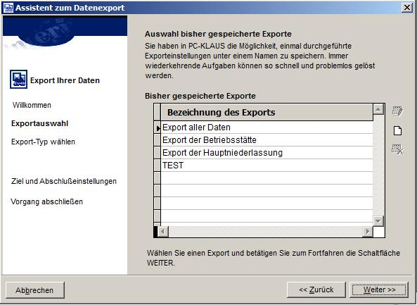 2. Seite Exportauswahl