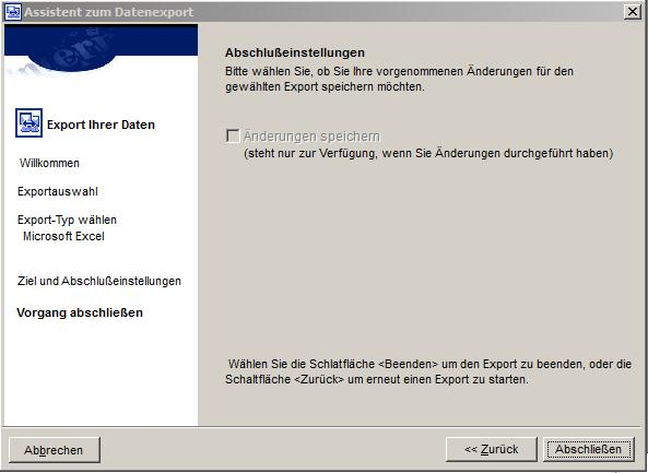 Speichern Sie ggf. Ihre Änderungen und wählen Sie zur Erstellung Ihres Exports die Schaltfläche [Abschließen].