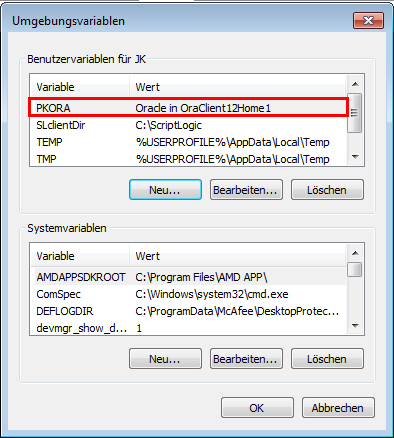Erstellung Sie eine Benutzer- oder Systemvariable PKORA und dem Namen des Treibers als Wert.