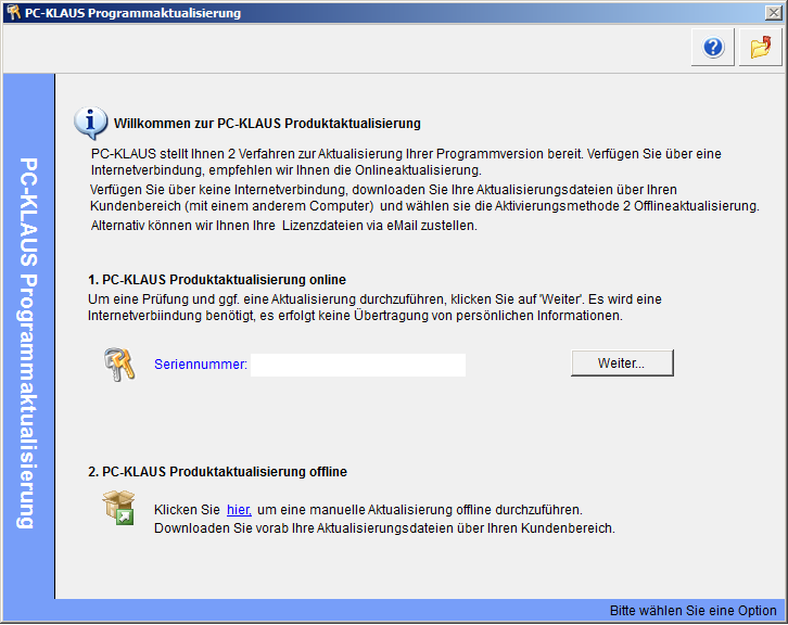 Staren Sie diesen programmteil, um PC-KLAUS Produktaktualisierungen durchzuführen.