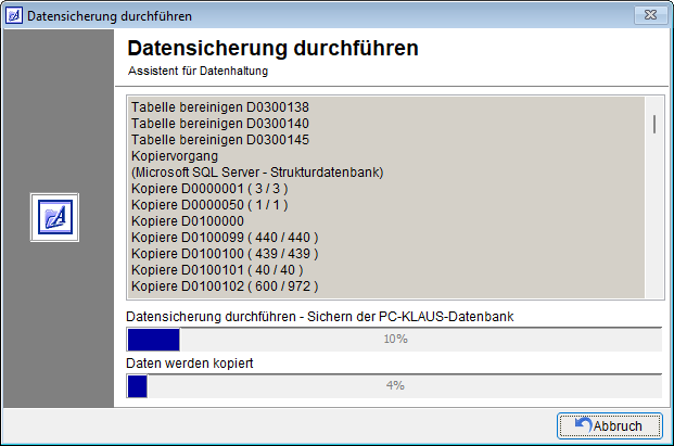 Damit beginnt die Erstellung der Datensicherung. Den Status der Datensicherung können Sie dem unteren Fortschrittsbalken entnehmen.