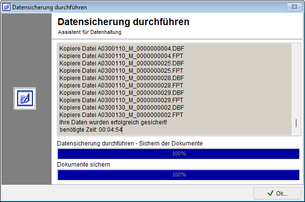 Sobald die Datensicherung abgeschlossen ist, betätigen Sie die Schaltfläche [OK].