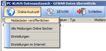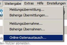 Sie starten das Formular zur Veröffentlichung unter dem Menüpunkt [Weitergabe]-[Online-Datenaustausch].