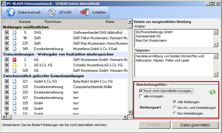 Meldungen die Online entfernt werden, da diese Gewerbemeldung in PC-KLAUS gelöscht wurde.