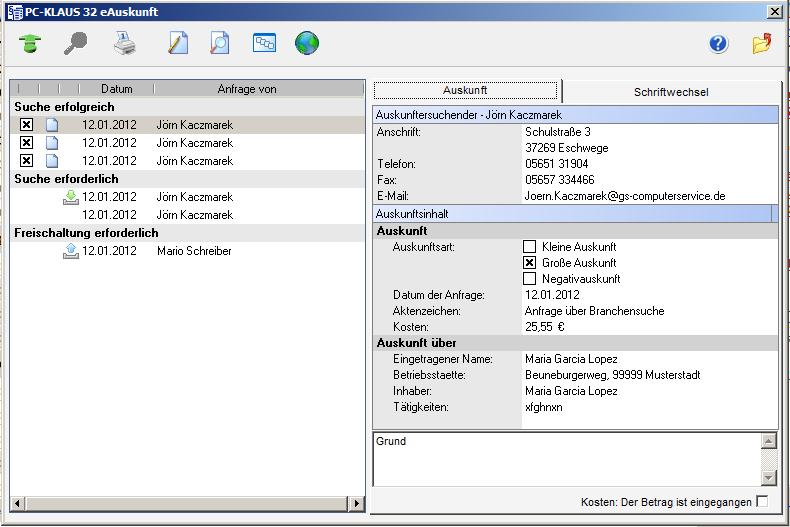 Eingehende Auskunftsanfragen