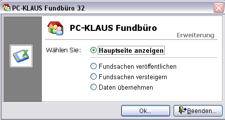 Um zur Startseite des PC-KLAUS Fundbüro Erweiterungsmodul zurückzukehren, klicken Sie diese Schaltfläche