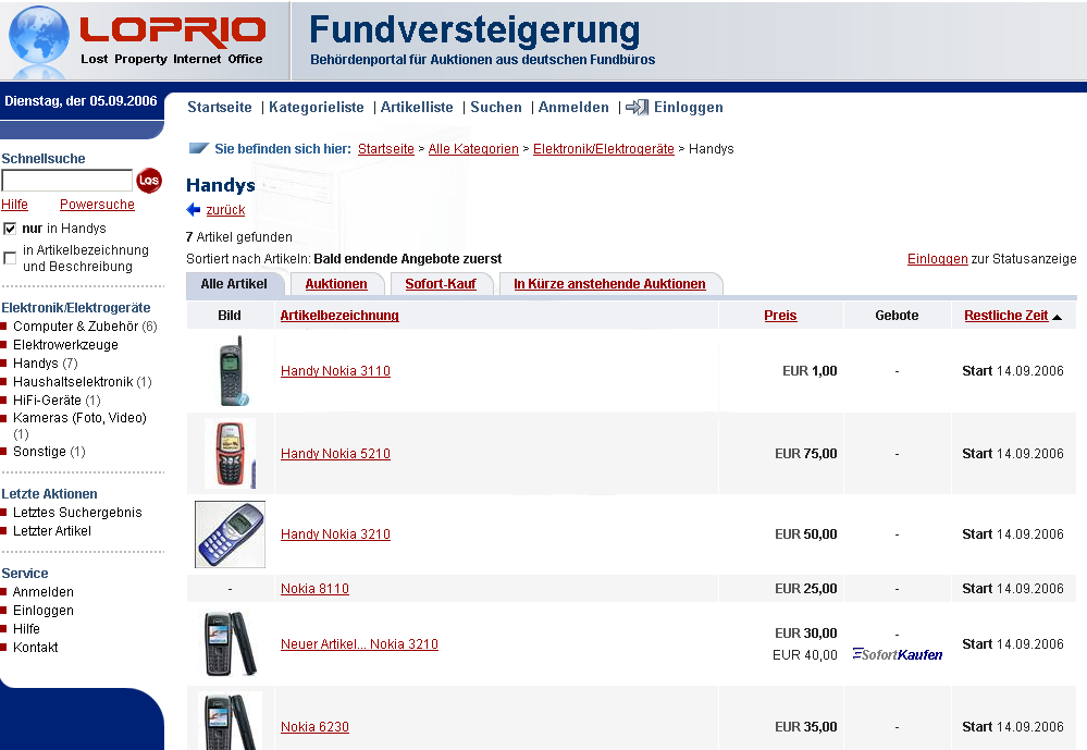 www.Loprio.de, vollkommen unabhängige Internetplattform zur Durchführung von Fundversteigerungen im Internet.