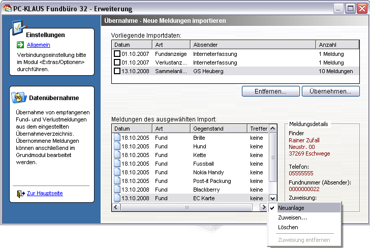 5. Freigabe importierter Fundsachen aus dem PC-KLAUS Fundbüro Grundmodul