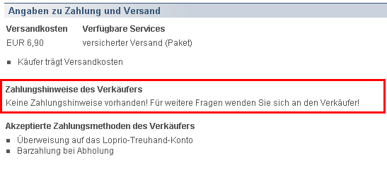 Sie haben die Möglichkeit Zahlungshinweise zu hinterlegen. Diese werden innerhalb der Versteigerungen zu jedem Artikel angezeigt.