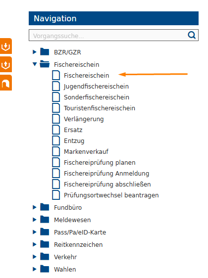 Um einen Fischereischein zu erstellen, wählen Sie im Navigationsbaum das Modul "Fischereischein" und dort den Vorgang "Fischereischein". Der Vorgang zur Erfassung des Fischereischeins wird gestartet und Sie werden zum Register "Person" geleitet.