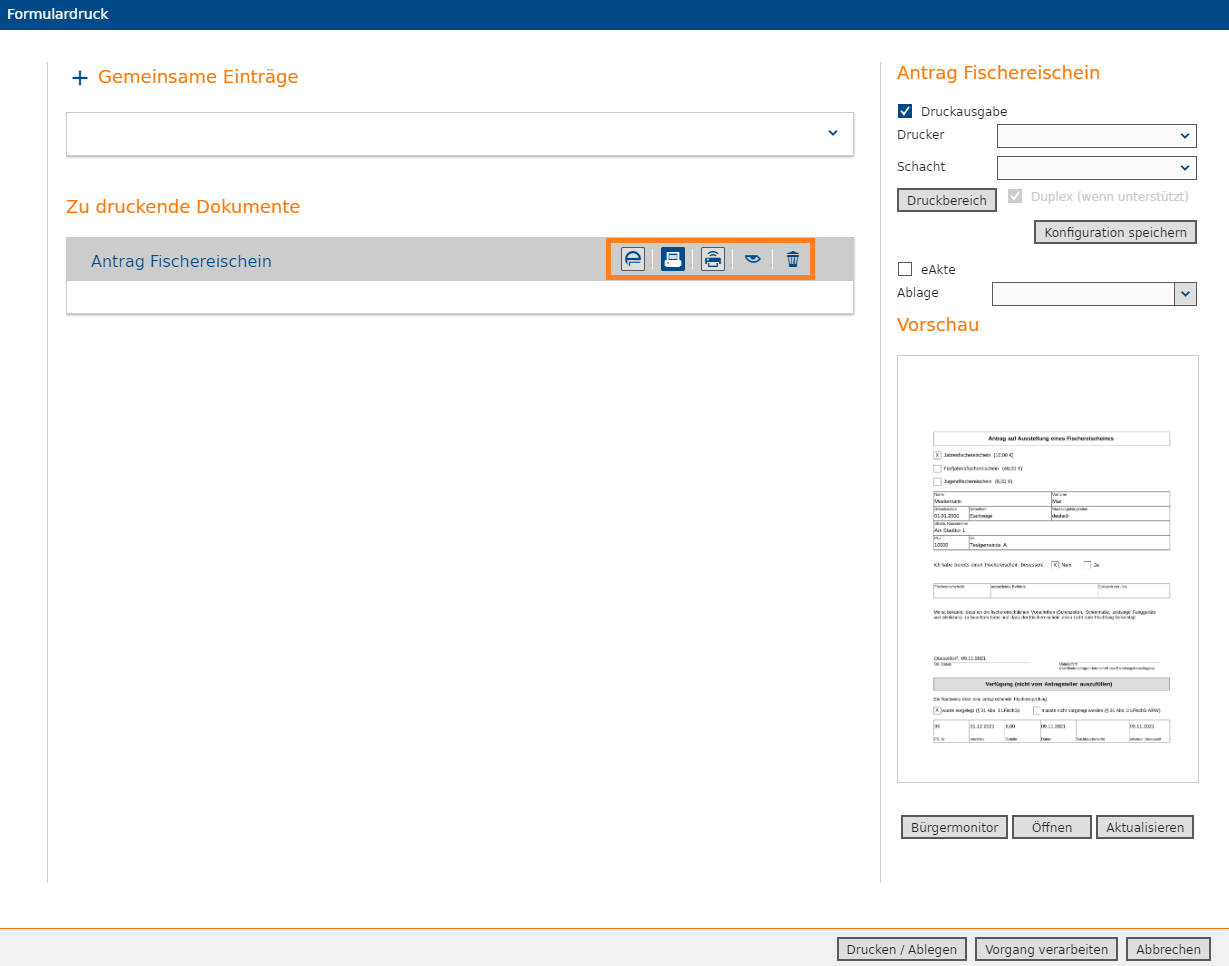 Vorgang durchführen / Formulardruck