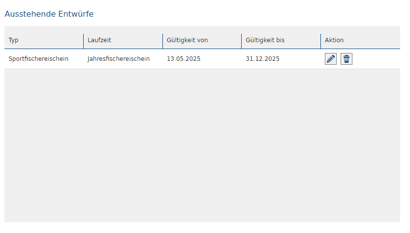 Sie können den Fischereischein jederzeit als Entwurf speichern, wenn beispielsweise Unterlagen fehlen.