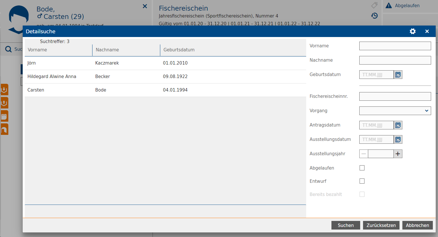 Diese Funktion ermöglicht es Ihnen, das letzte Suchergebnis der Detailsuche ohne erneute Eingabe der Suchbegriffe erneut anzuzeigen. Dies ist u.A. sehr hilfreich, wenn Sie in einem Suchergebnis etwas recherchieren möchten.