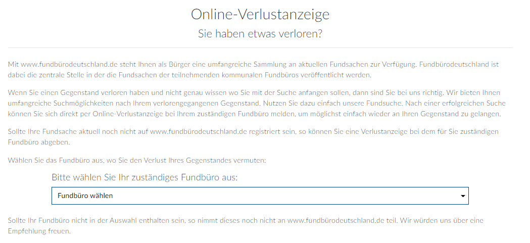 Im Folgenden wird erklärt wie über fundbürodeutschland.de ganz leicht eine Verlustanzeige aufgegeben werden kann.