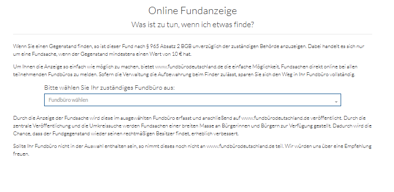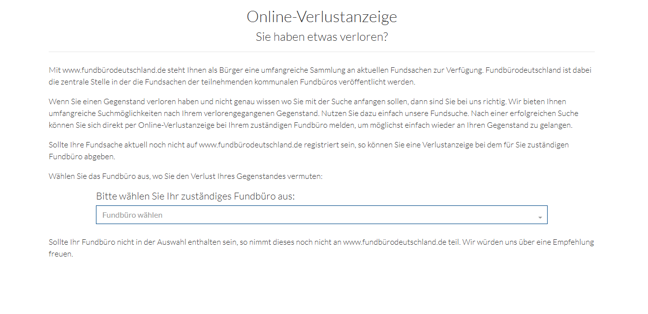 Im Folgenden wird erklärt wie über fundbürodeutschland.de ganz leicht eine Verlustanzeige aufgegeben werden kann.
