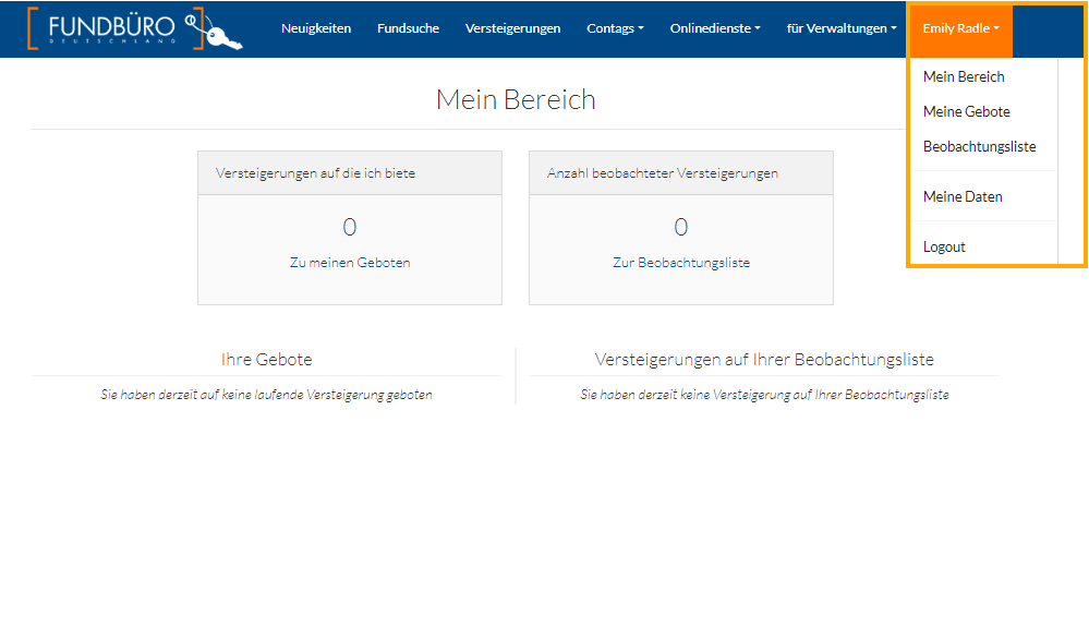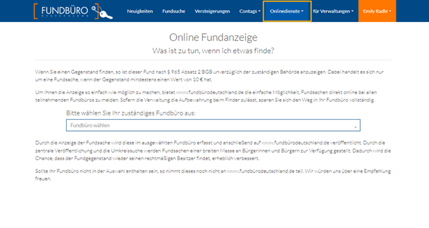 Auf www.fundbürodeutschland.de können Sie als Bürger z.B. an Versteigerungen teilnehmen oder einen verlorenen Gegenstand suchen. Folgen Sie den Artikeln, um mehr zu erfahren.