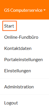 Klicken Sie auf "Start", um zum Start- bzw. Behördenbereich zu gelangen.