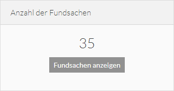 Die Kachel „Anzahl der Fundsachen“ zeigt Ihnen auf einen Blick, wieviele Fundsachen derzeit verwaltet werden. Wenn Sie auf „Fundsachen anzeigen“ klicken, werden Sie zur Fundübersicht weitergeleitet.