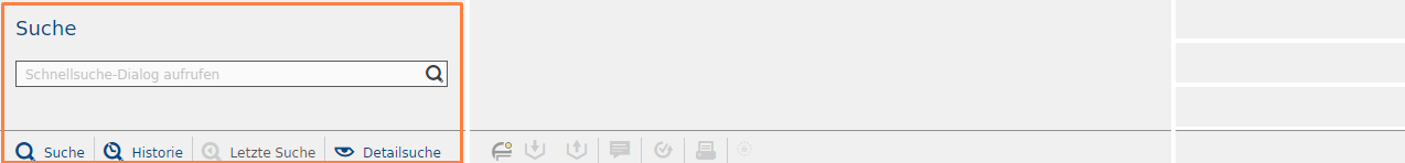 In diesem Bereich befinden sich die Suchfunktionen und das von Ihnen ausgewählte Bezugsobjekt mit kurzen Informationen.
