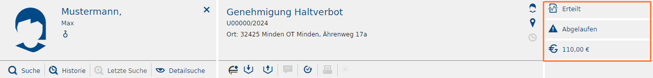 Die Statusinformationen zeigen schnell, ob ein Antrag erteilt wurde, ob dieser abgelaufen ist, und wie hoch dessen Gebühren sind.