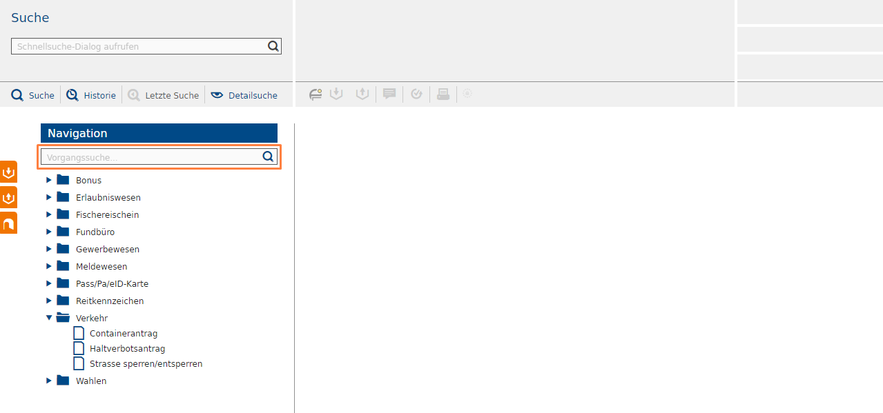 Die Vorgangssuche ermöglicht es Ihnen, nach verschiedenen Vorgängen in all Ihren VOIS-Anwendungen zu suchen.